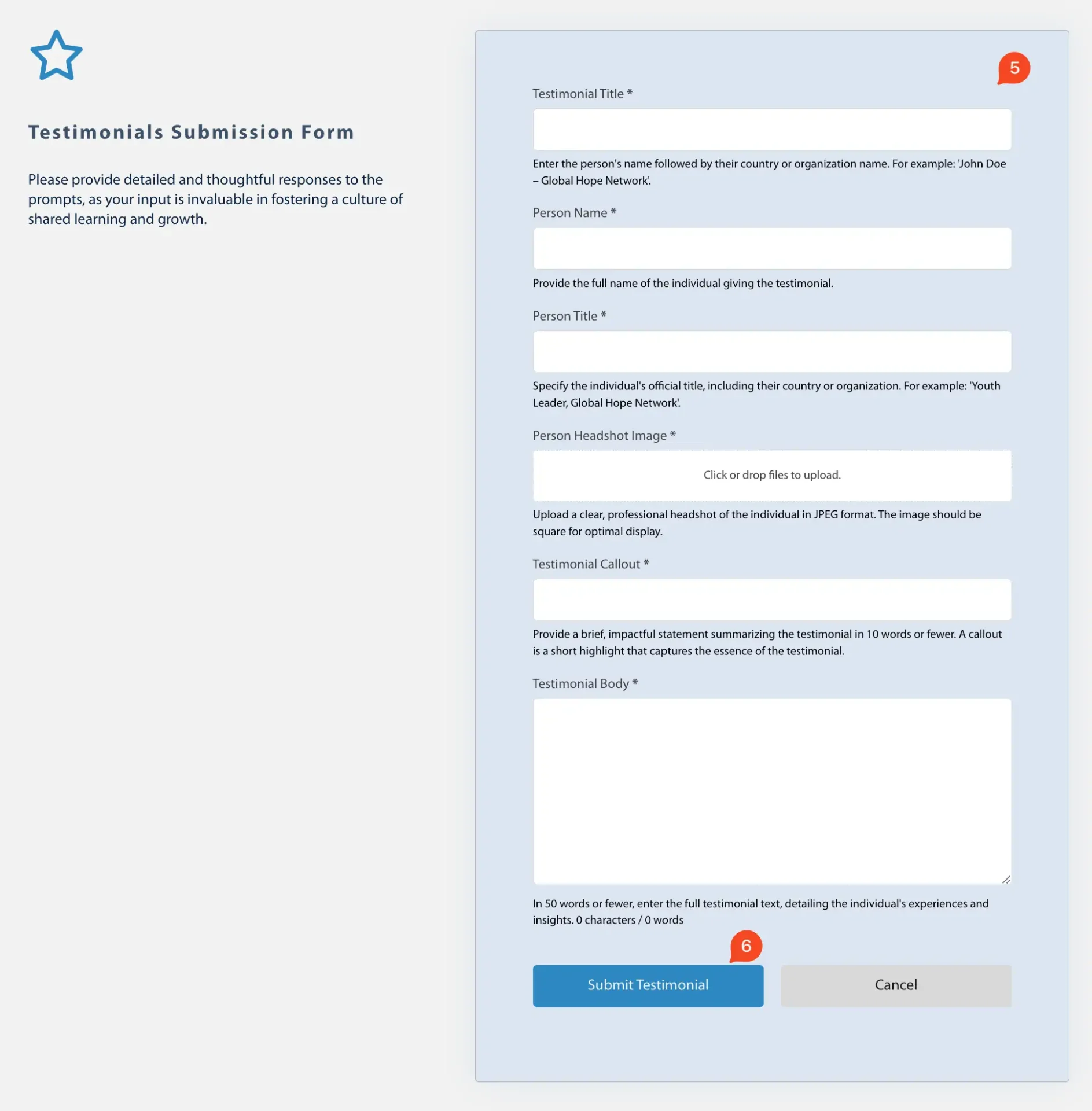 5. Testimonial Form