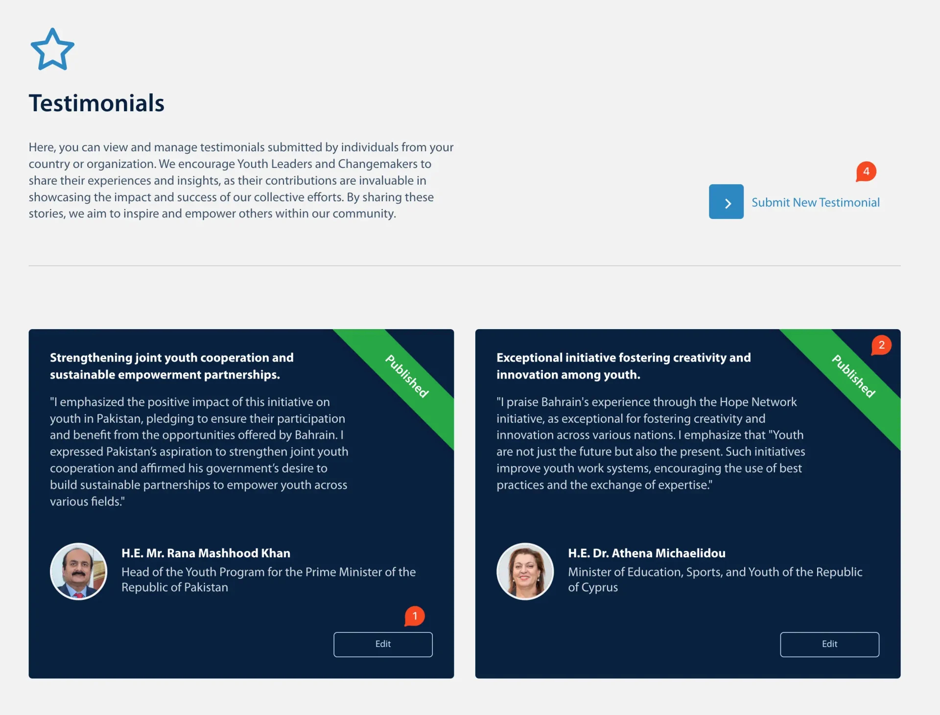 - Click “Edit” to modify an existing Testimonial. Update the text, name, or any other relevant details.